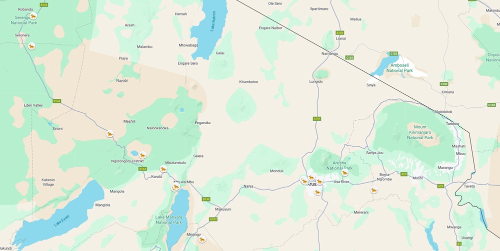 Vom Flughafen Kilimanjaro geht es in Arusha-Nationalparkbeim Mount Meru. Über den Tarangire-Nationalpark zum Lake Manyara. Weiter zum absoluten Highligt, den Serengeti-Nationalpark Auf dem Rückweg geht es in den Ngorongoro-Krater.